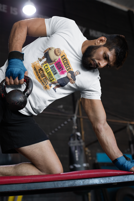 Excuses Don’t Burn Calories T-Shirt – Funny Fitness Tee – Motivational Gym Shirt for Men – Workout Gift Idea